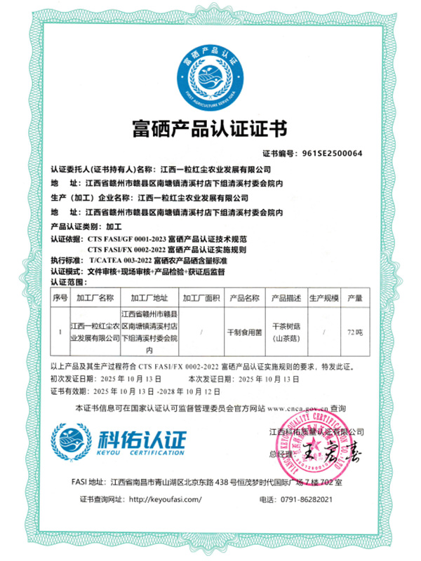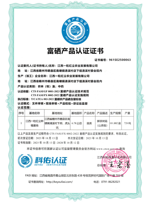 江西一粒紅塵農業發展有限公司是一家總部位于江西省贛縣的現代農業多元型企業,專注于食用菌的研發種植、深加工、貿易、研教培、農文旅等全產業鏈發展。公司秉承“健康綠色共享、共贏”的核心價值觀,致力于引領鄉村振興之路,旨在成為......